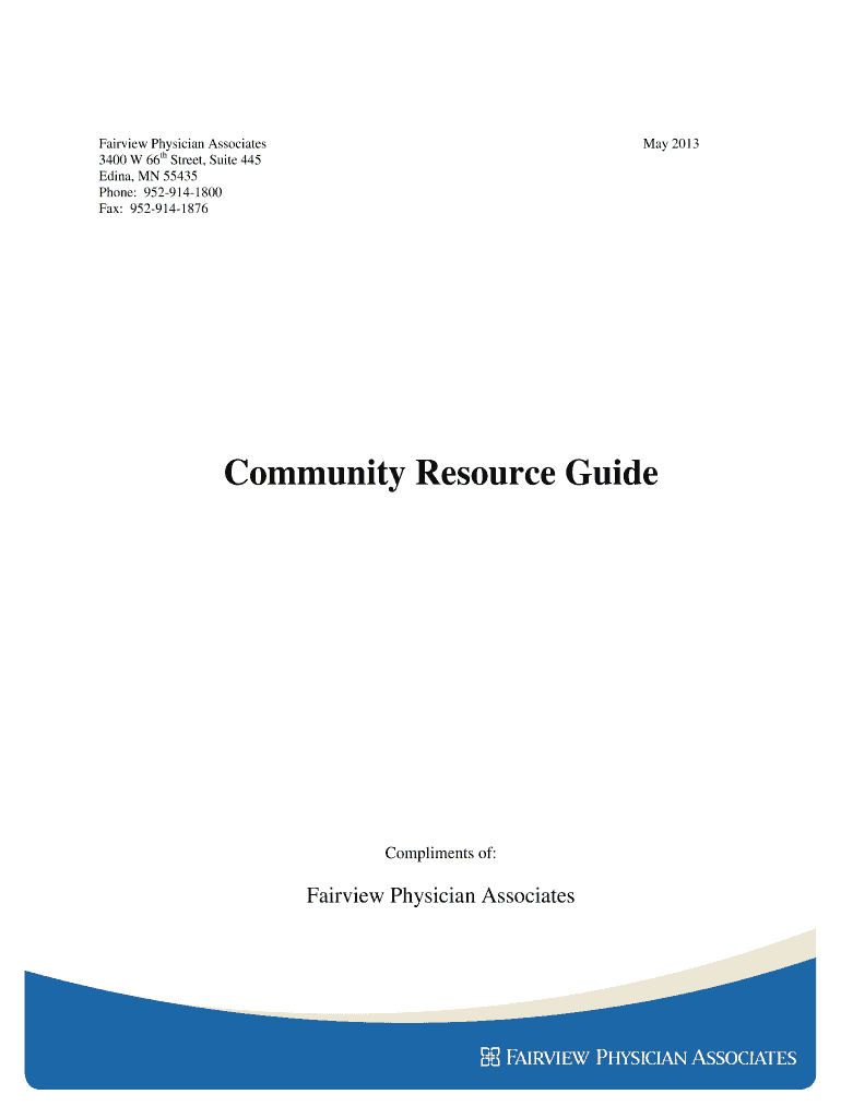 (18003332433) is a key location for state wide resources for all ages. Fairview Physician Associates