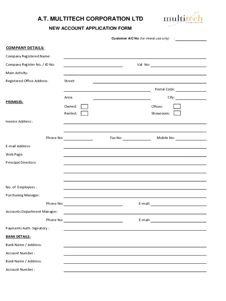 Customer A/C No (for internal use only):COMPANY DETAILS: