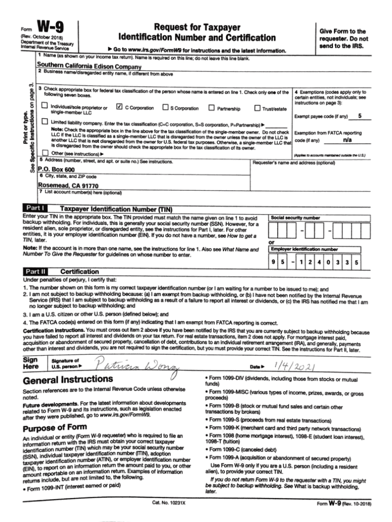FormW9(Rev. October 2018) of the Treasury Internal Revenue ServiceRequest for Taxpayer Identification Number and Certification Go to www.lrs.gov/FonnW9 for Instructions and the latest Information.