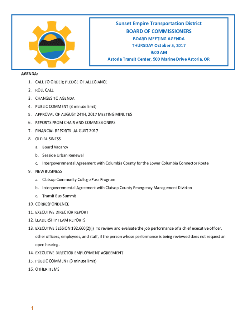 BOARD MEETING AGENDA