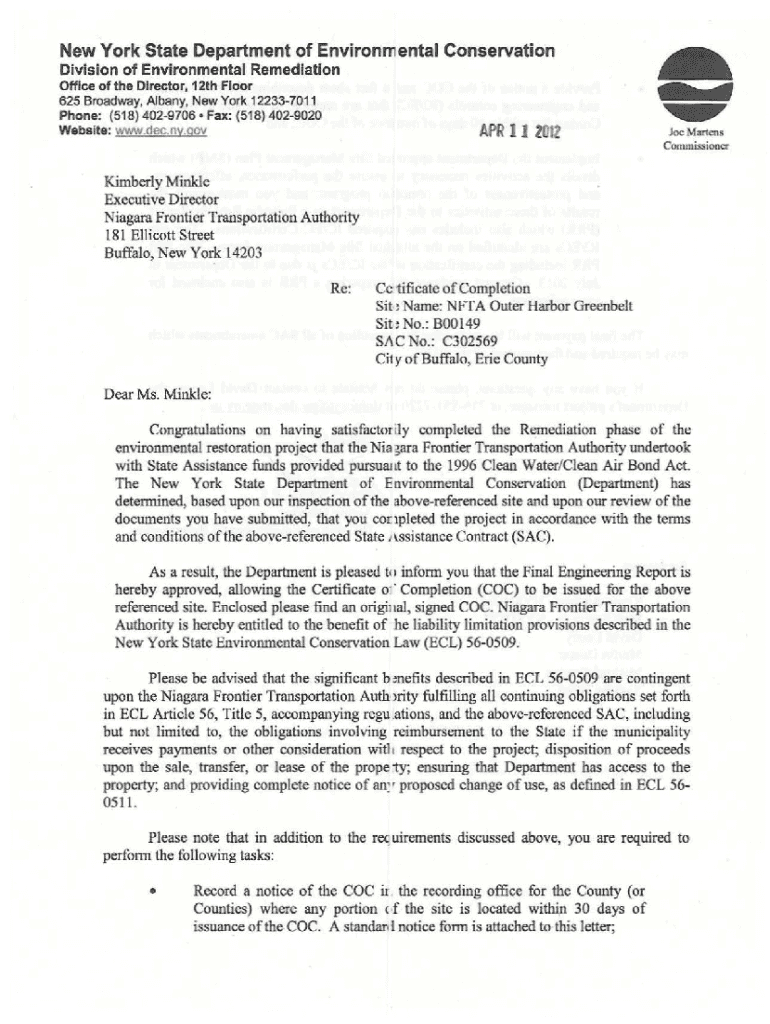 New York State Department of Environmental Conservation Division of Environmental Remediation Office of the Director, 12th Floor 625 Broadway, Albany, New York 122337011Phone: (518) 4029706 Fax: (518)
