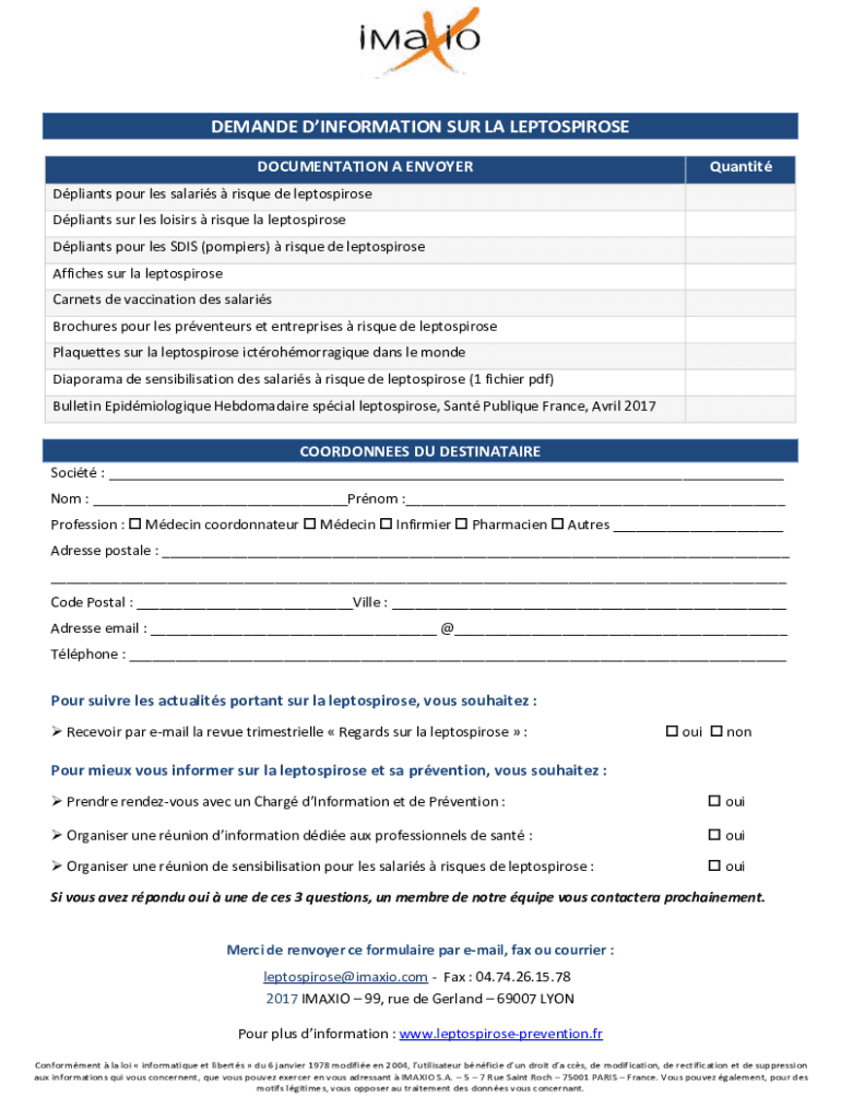 Obtenir Le Gratuit Leptospirose n'est-ce pas le formulaire que vous recherchez ?Recherchez un autre formulaire ici.