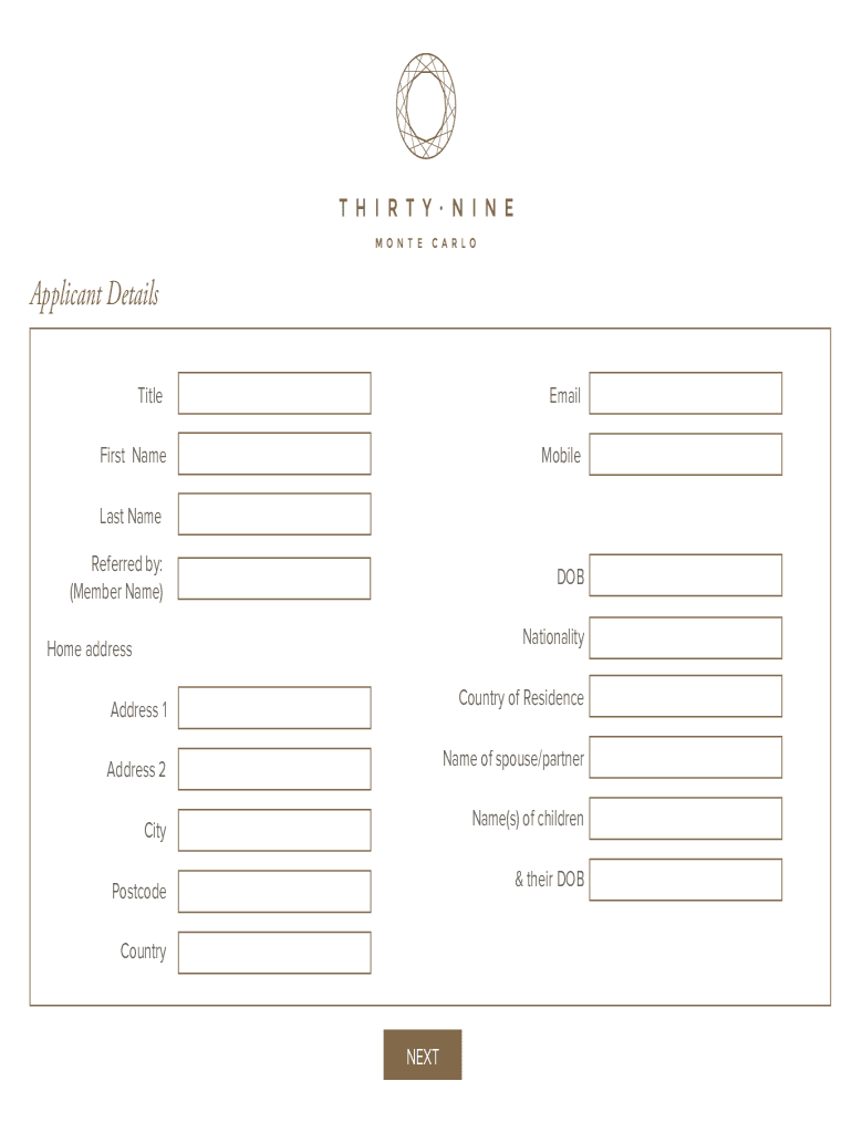 Applicant Details TitleEmailFirst NameMobileLast Name Referred by: (Member Name)DOB NationalityHome address 1Country of ResidenceAddress 2Name of spouse/partnerCityName(s) of childrenPostcode& their