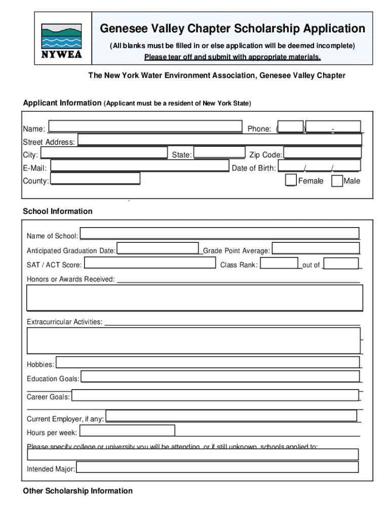 To fill out the NYWEA Genesee Valley scholarship, follow these steps: