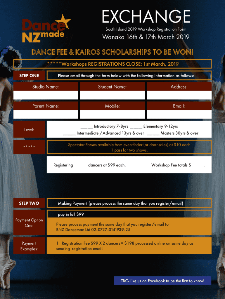 EXCHANGE South Island 201 Workshop Registration FormWanaka 1st & 1st March 201% “/$& '&&, “*$3044)0 “34)*1450#&80/ *****Workshops REGISTRATIONS CLOSE: 1st March 201-STEP Release email through