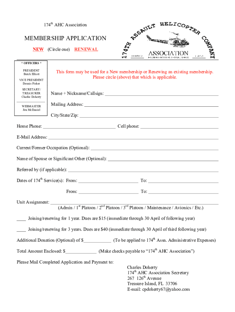 174th AHC AssociationMEMBERSHIP APPLICATION