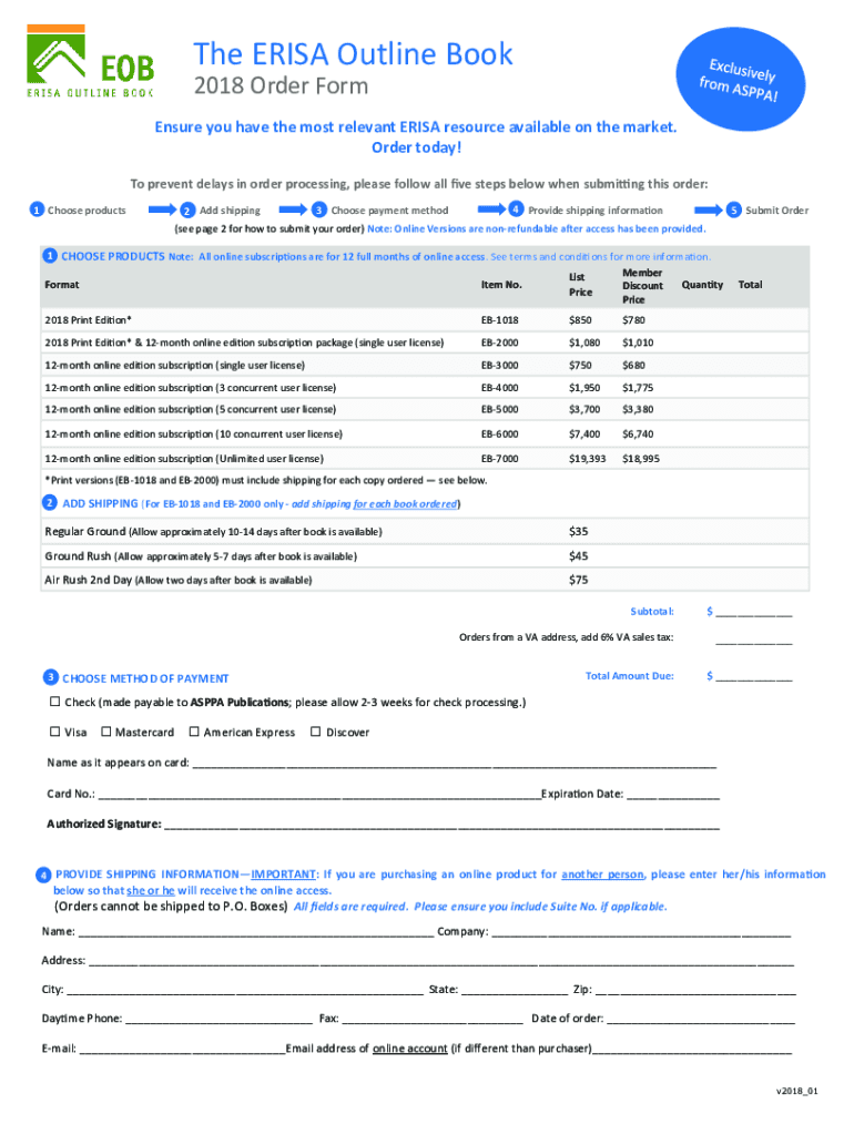 2018 Order Form