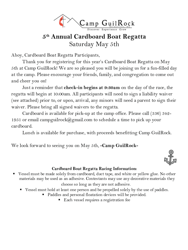 Thank you for registering for this year's Cardboard Boat Regatta on May