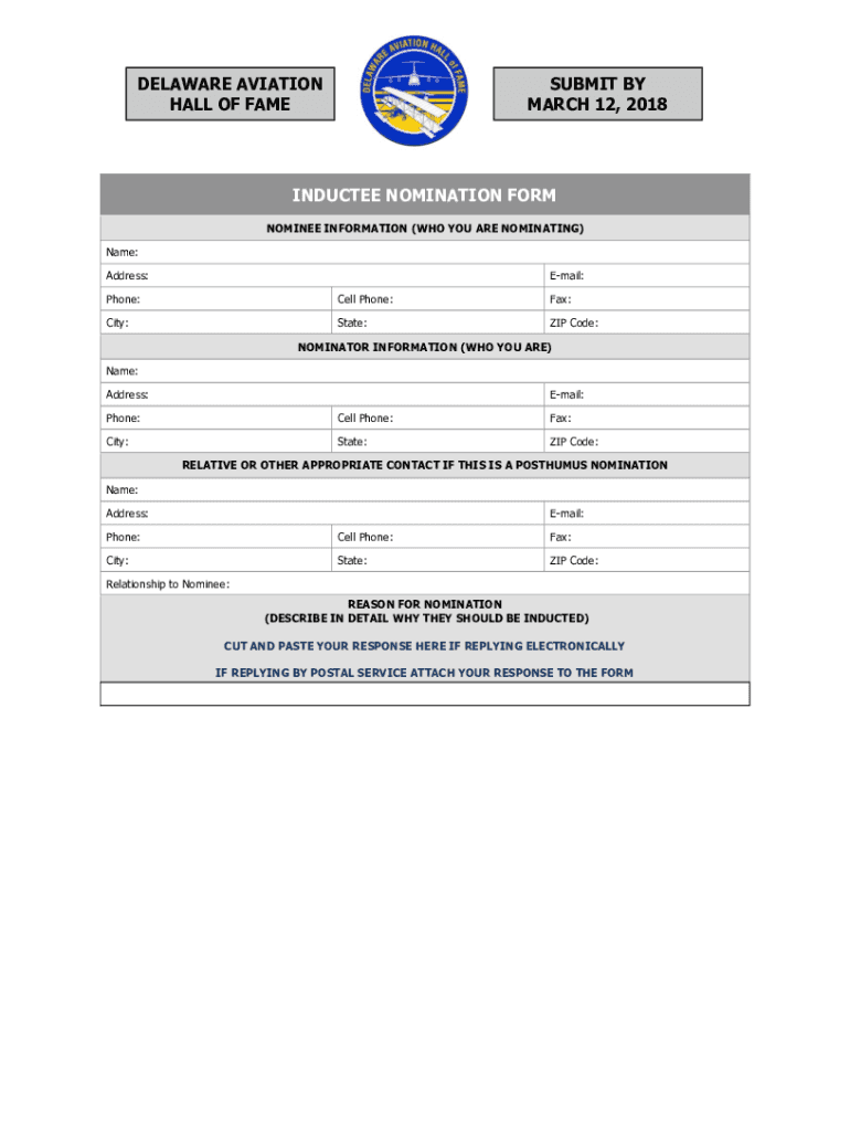 MARCH 12, 2018INDUCTEE NOMINATION FORM