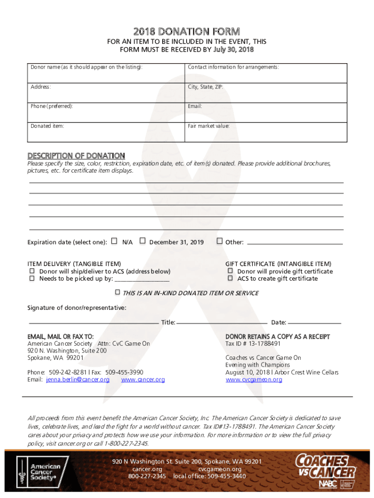 Donor name (as it should appear on the listing):Contact information for arrangements:Address:City,