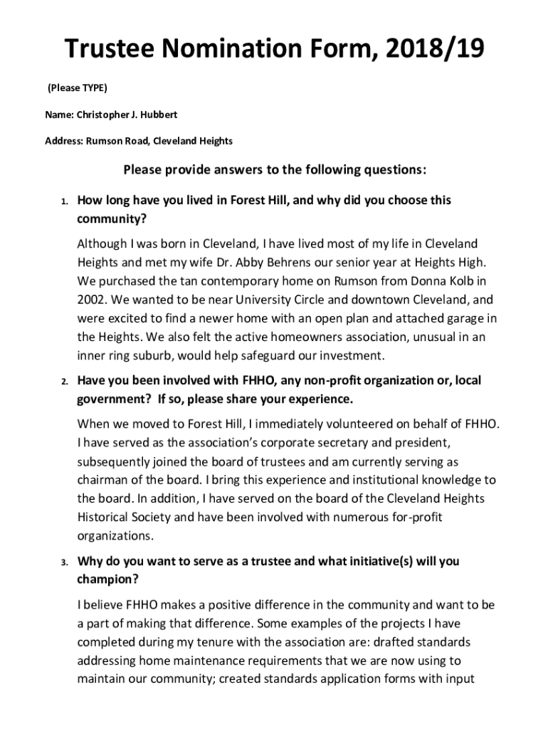 Get the free C Hubbert 2018-19 trustee nomination form (K0701101x7AC2A)