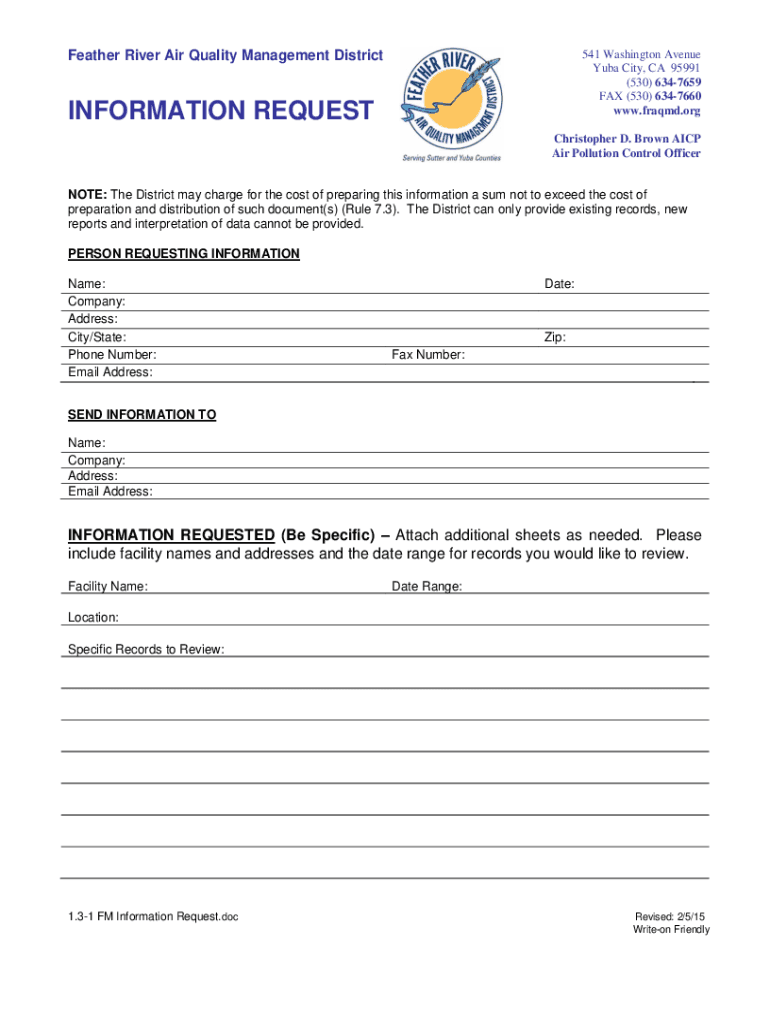 www.fraqmd.orgFeather River Air Quality Management DistrictINFORMATION REQUEST Christopher D. Brown ICP