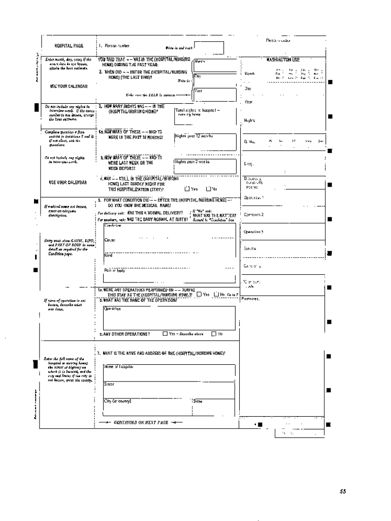 Person numb9 HOSPITAL PAGE YOU SAID FATWAS IN THE (HOSPITAL/NURSING HOME) DURING THE PAST YEAR:WASHINGTON USED?. WHEN DID ENTER THE (HOSPITAL HOME) (THE LAST TIME)? USEYOURCALENDAR3. H OW MANY NIGHTS