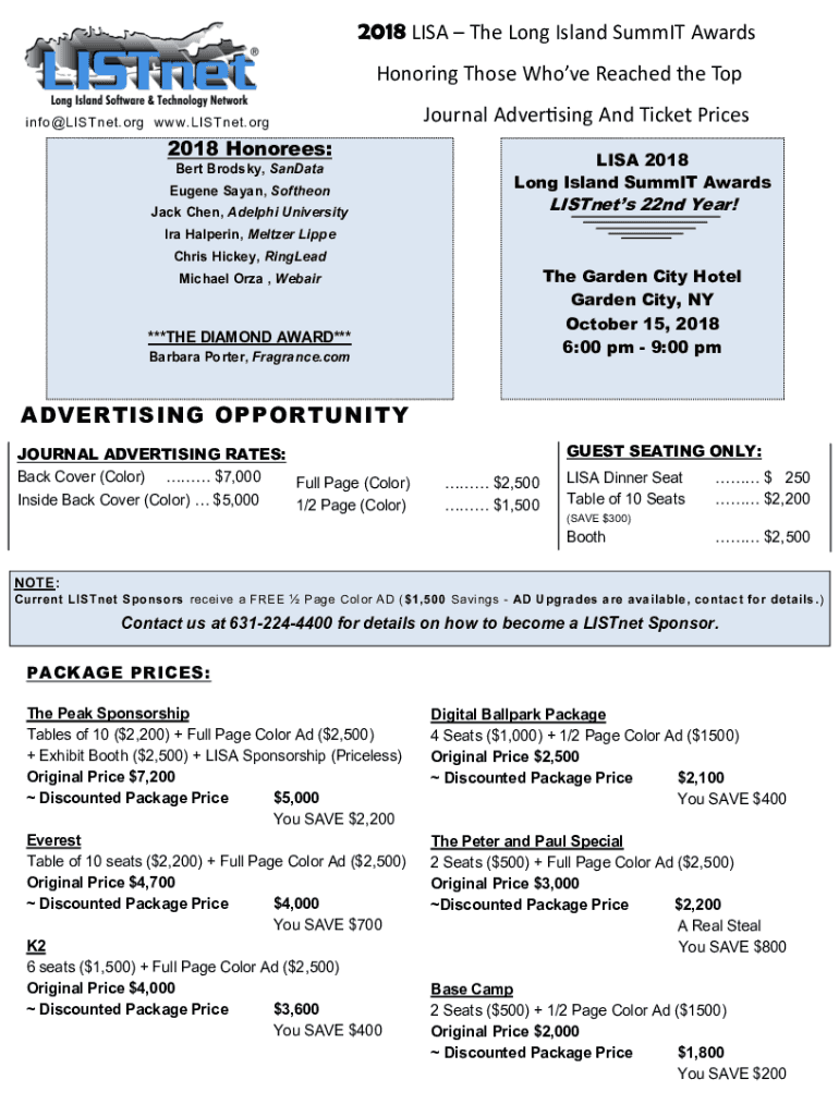 2018 LISA The Long Island Summit Awards Honoring Those Who've Reached the Top info LIST net.org www.LISTnet.org2018 Honorees: Bert Trotsky, Santa Eugene Satan, SoftheonJournal Advertising And Ticket