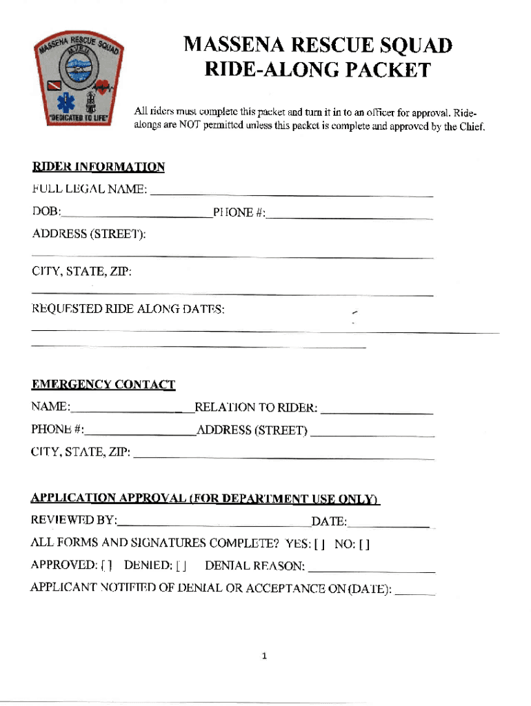 All riders must complete this packet and turn it in to an officer for approval. Dealings are NOT permitted unless this packet is complete and approved by the Chief.