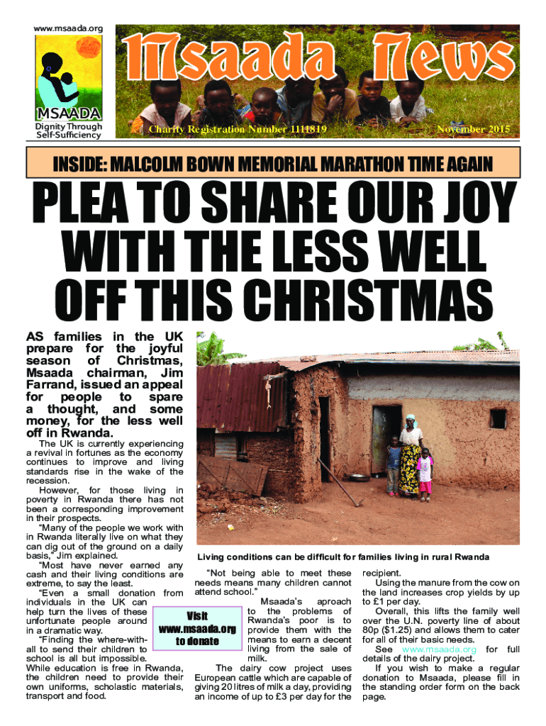 Charity Registration Number 1111819November 2015INSIDE: MALCOLM BORN MEMORIAL MARATHON TIME AGAINPLEA TO SHARE OUR JOY
