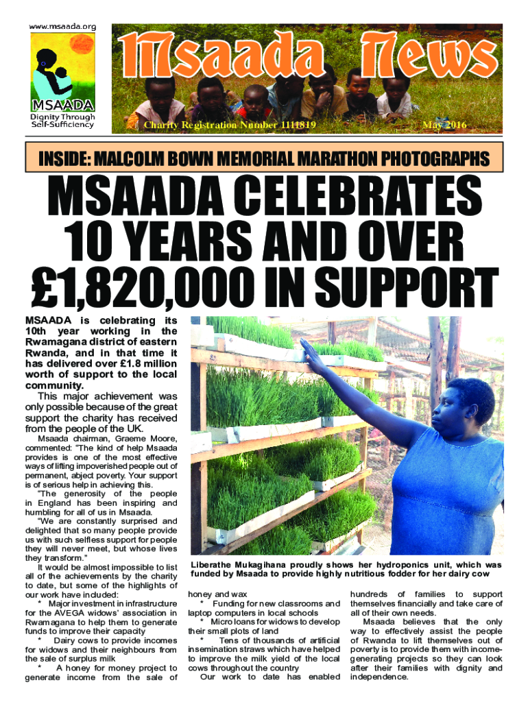 Charity Registration Number 1111819May 2016INSIDE: MALCOLM BORN MEMORIAL MARATHON PHOTOGRAPHSMSAADA CELEBRATES