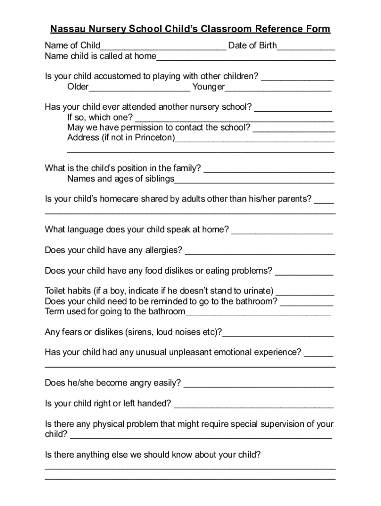 Get the free Nassau Nursery School Childs Classroom Reference Form