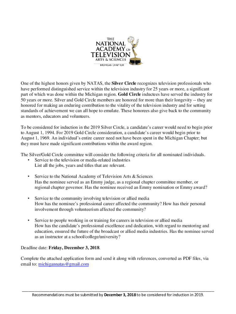 Get the free One of the highest honors given by NATAS, the Silver Circle ...