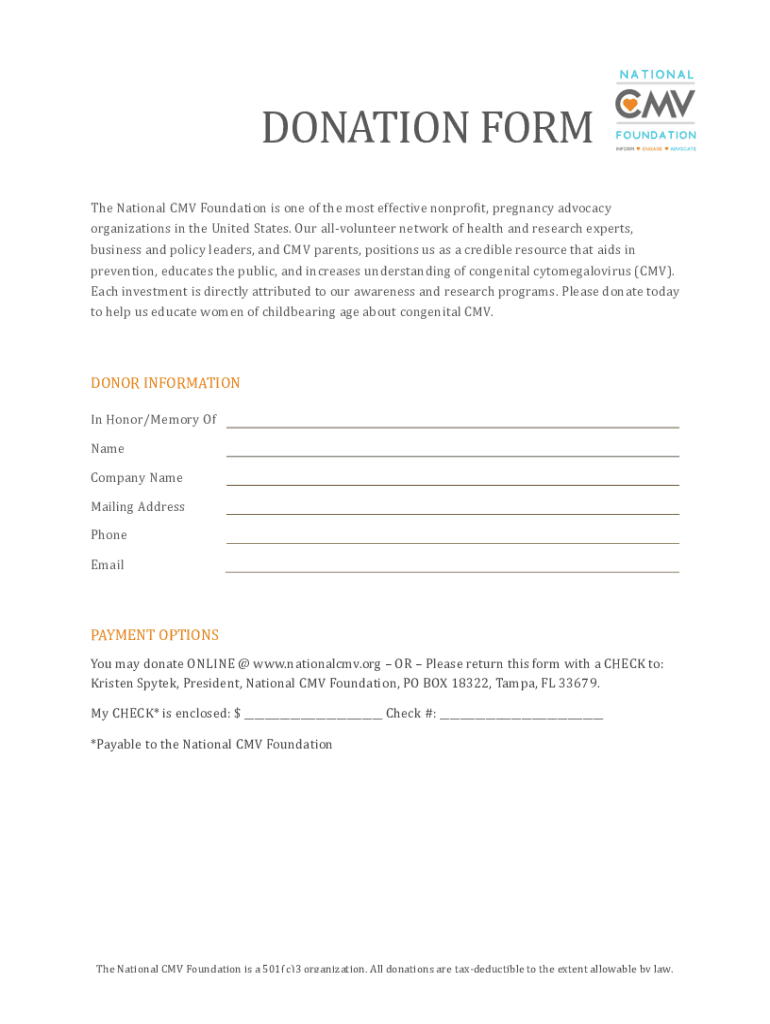 DONATION Forth National CMV Foundation is one of the most effective nonprofit, pregnancy advocacy organizations in the United States. Our all volunteer network of health and research experts, business