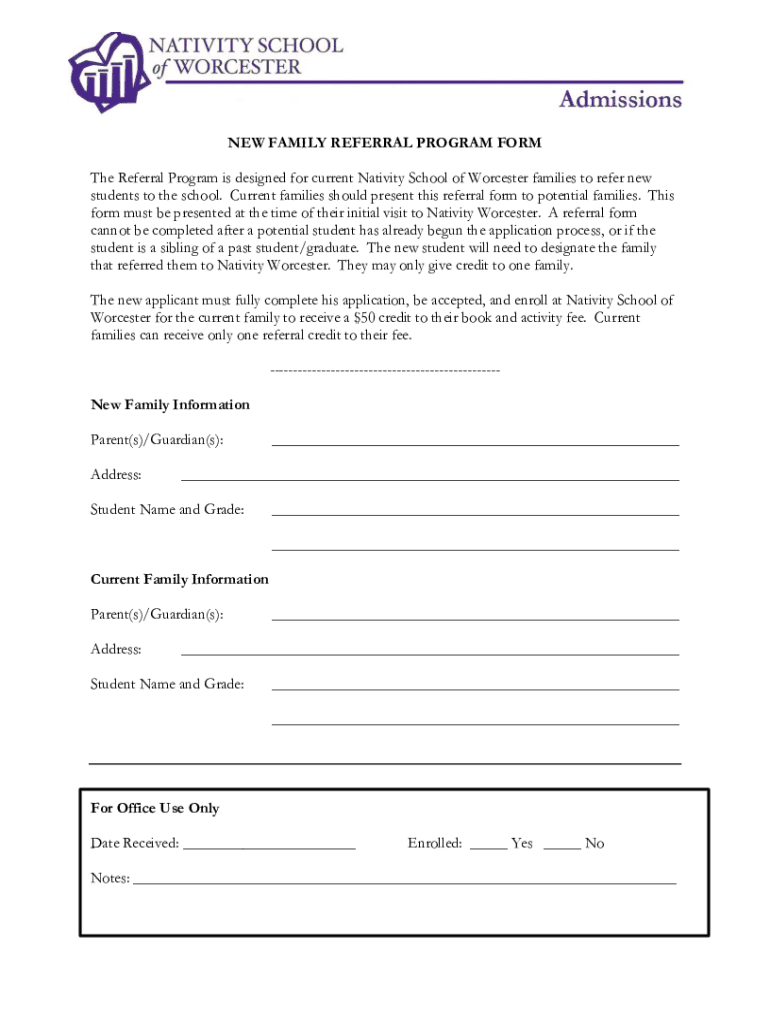Get the free NEW FAMILY REFERRAL PROGRAM FORM