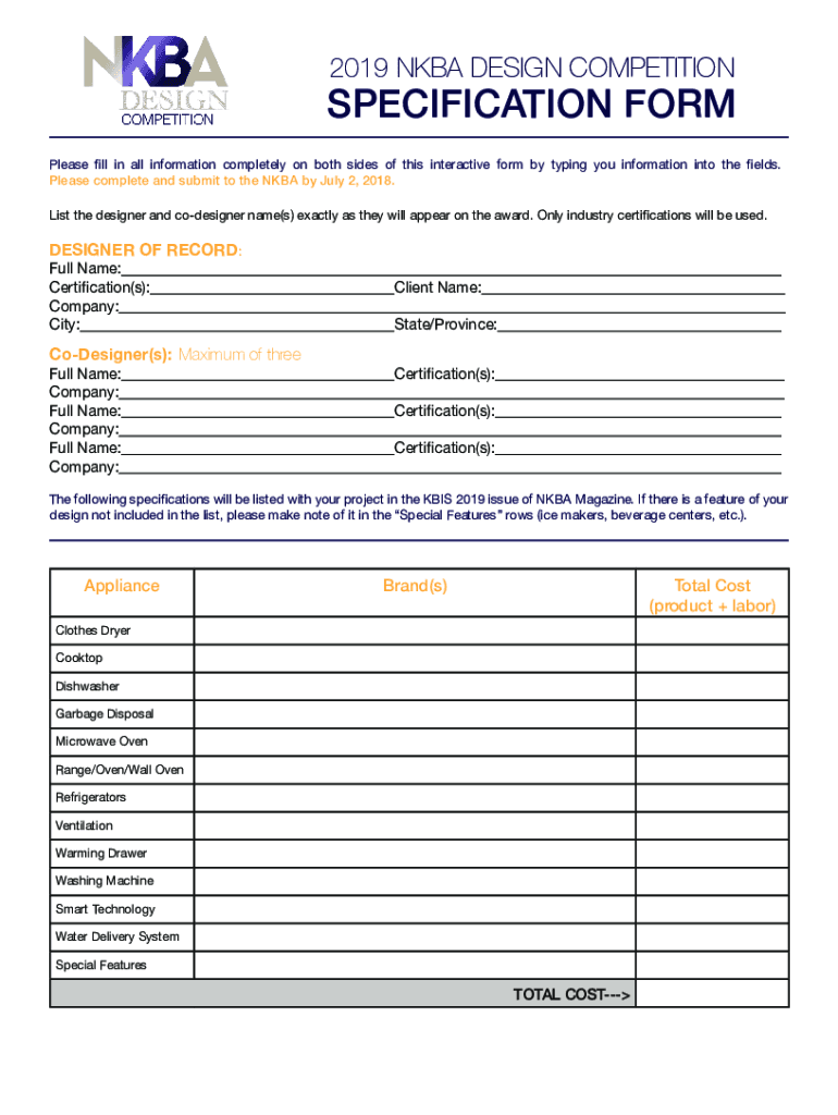 2019 NBA DESIGN COMPETITIONSPECIFICATION FORM