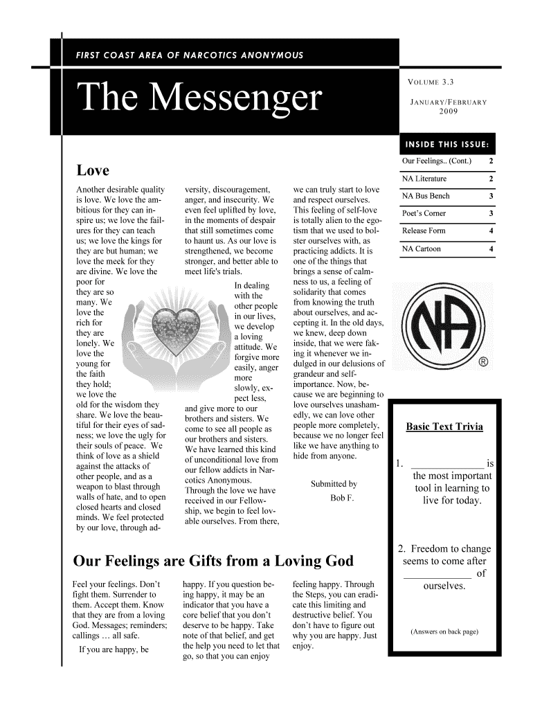 Once submitted, the form will be processed by the Narcotics Anonymous organization, and your entry may be included in the upcoming newsletter based on their editorial schedule.