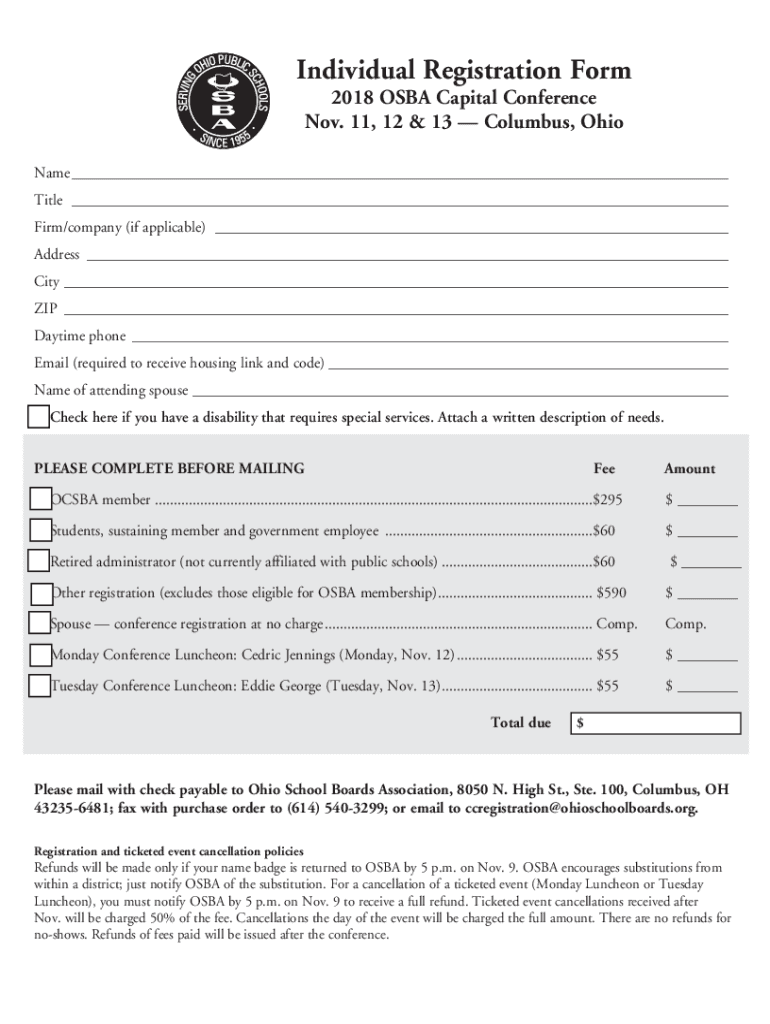 Get the free 2018 conference individual registration form - OSBA Capital ... - conference ohiosch...