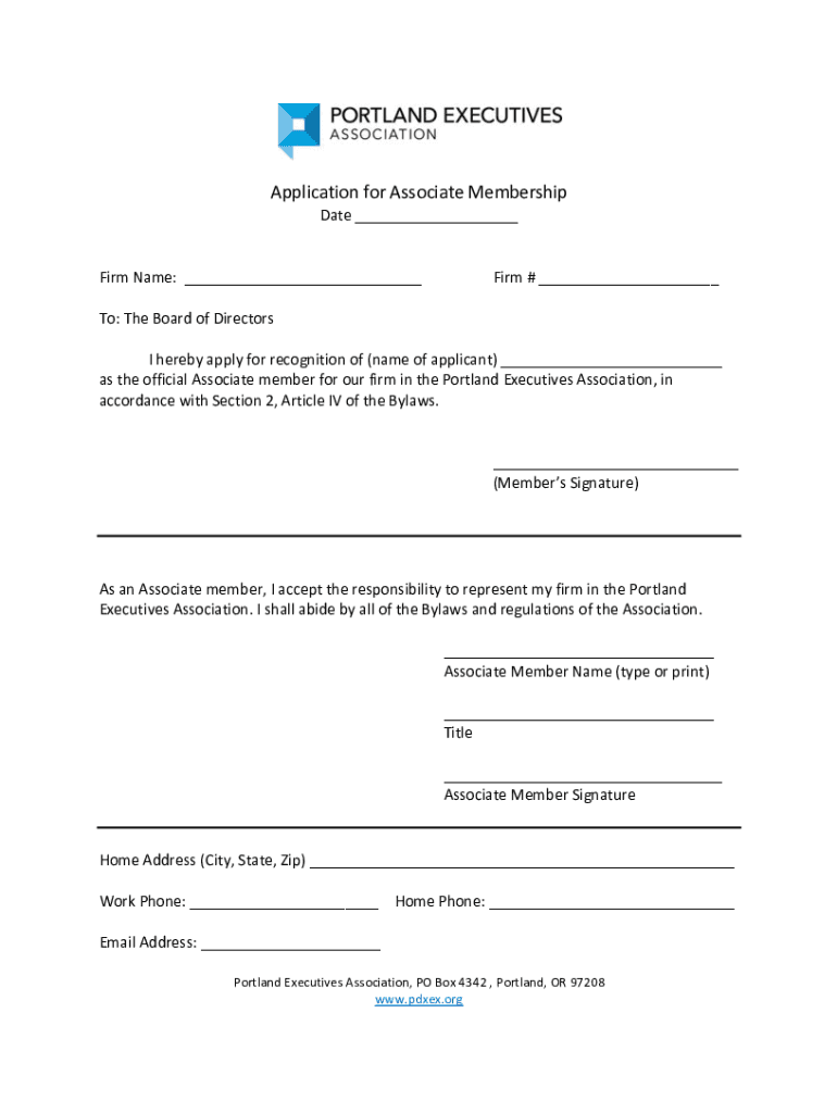 Application for Associate Membership Date Firm Name: Firm # To: The Board of Directors I hereby apply for recognition of (name of applicant) as the official Associate member for our firm in the Portland
