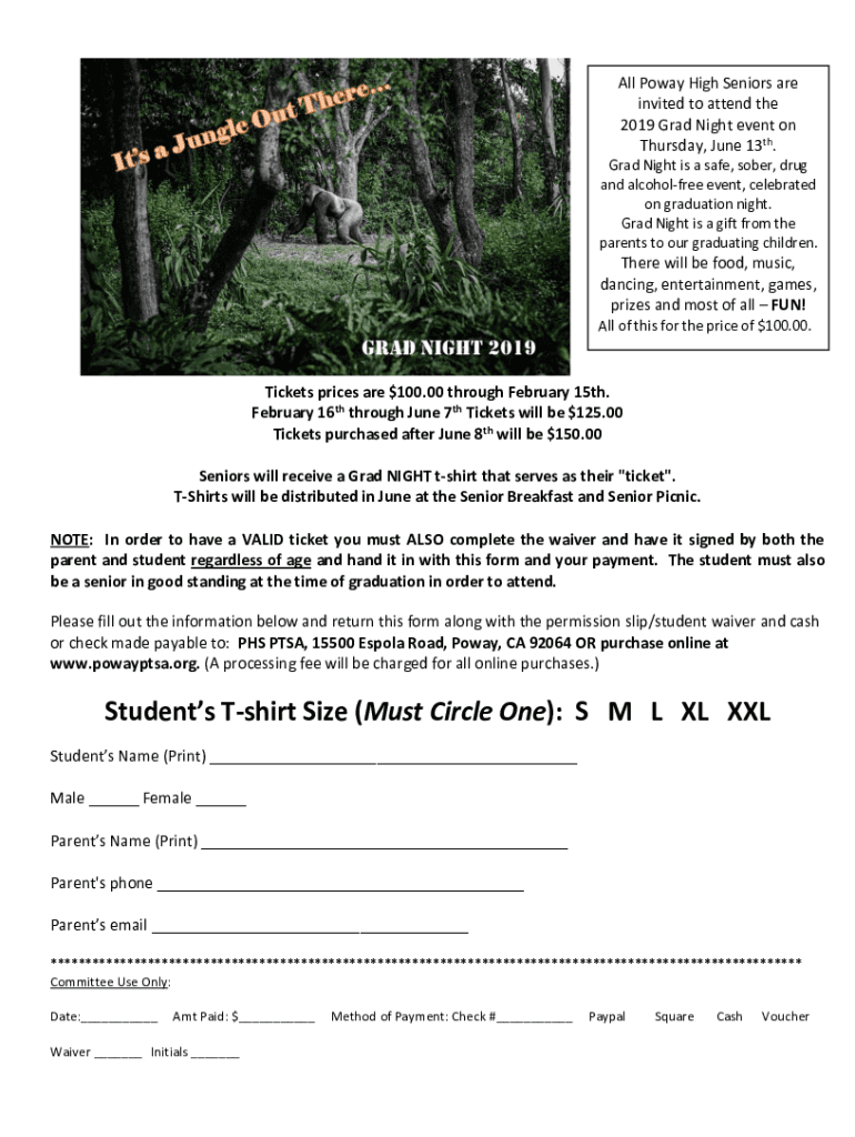 Get the free Grad Nite InformationlegacyPoway High School Parent ...