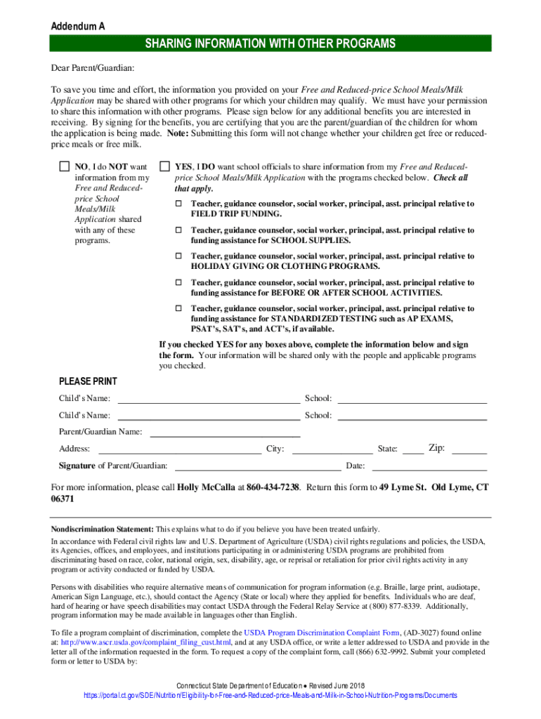 Addendum SHARING INFORMATION WITH OTHER PROGRAMS