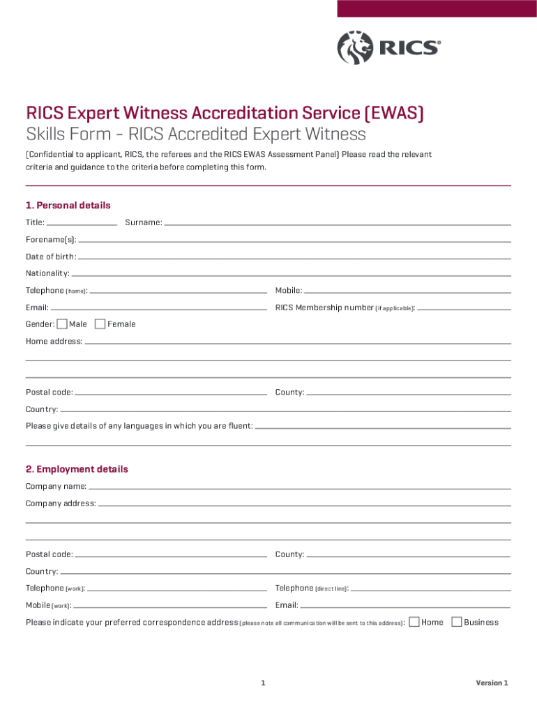 Get the free RICS Expert Witness Accreditation Service (EWAS) Skills Form