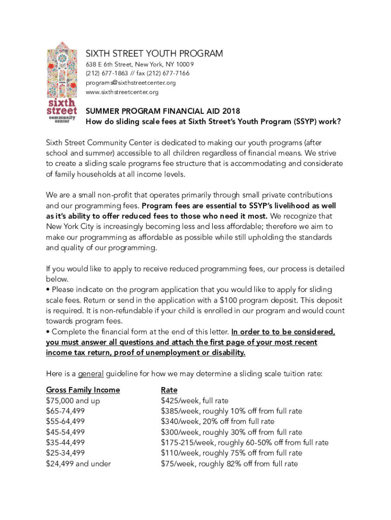 www.sixthstreetcenter.orgSUMMER PROGRAM FINANCIAL AID 2018