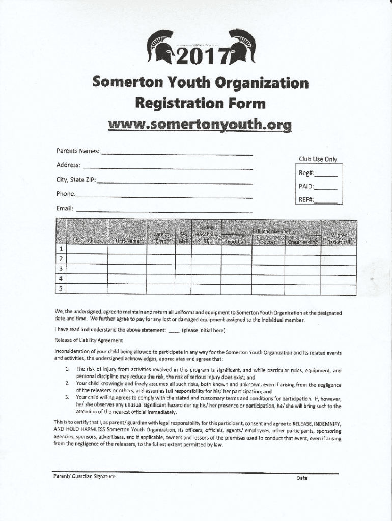 Somerton Youth Organization Registration is not the form you're looking for?Search for another form here.
