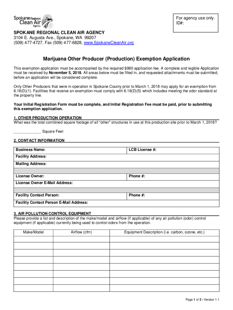 (509) 4774727, Fax (509) 4776828, www.SpokaneCleanAir.orgMarijuana Other Producer (Production) Exemption