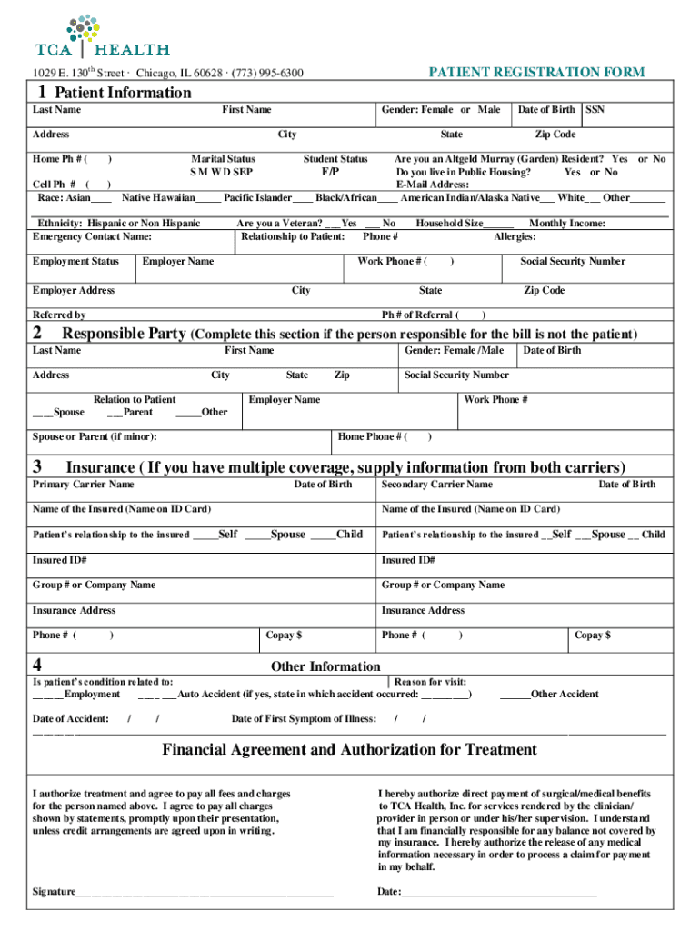 1029 E. 130th Street Chicago, IL 60628 (773) 9956300PATIENT REGISTRATION FORM1 Patient Information Last NameFirst Headdress Home pH # (Gender: Female or Male City)Cell pH # () Race: Asian Marital