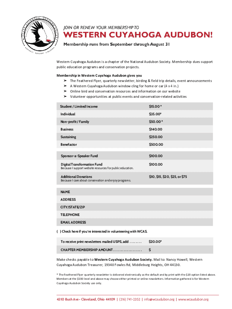 Get the free Support Our Work - Western Cuyahoga Audubon