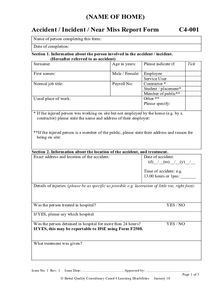 Accident / Incident / Near Miss Report FormC4001Name of person completing this form: