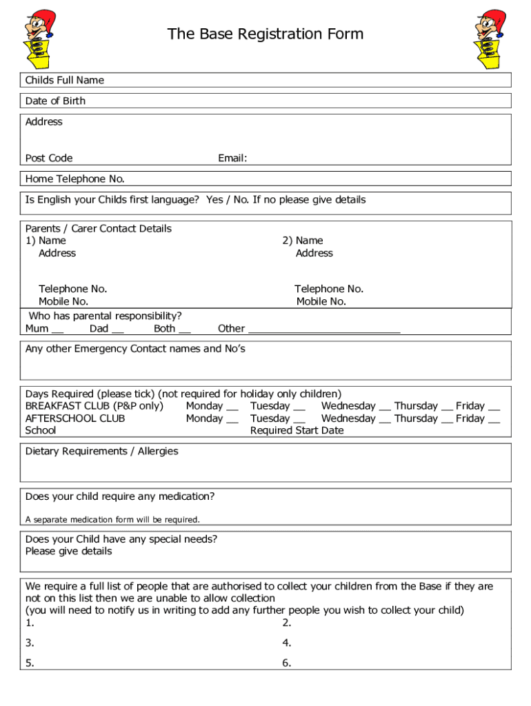 The Base Registration Form Child's Full Name Date of Birth Address Post Voicemail:Home Telephone No. Is English your Child's first language? Yes / No. If no please give details Parents / Carer Contact