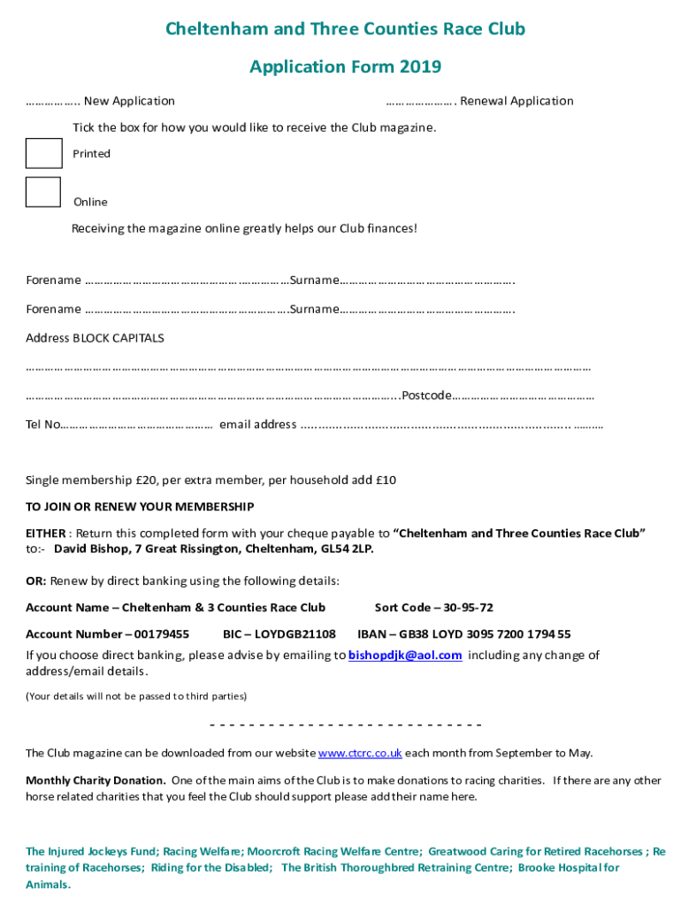 Application Form 2019. New Application. Renewal ApplicationTick the box for how you would like to receive the Club magazine.