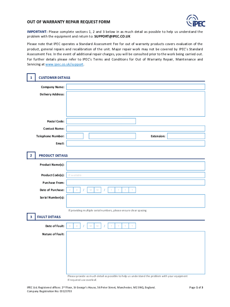 Get the free OUT OF WARRANTY REPAIR REQUEST FORM - IPEC LTD