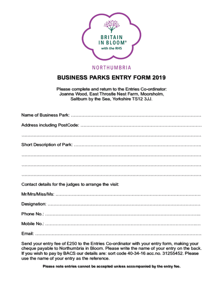 Get the free Business Parks Entry Form 2020 - Northumbria in Bloom