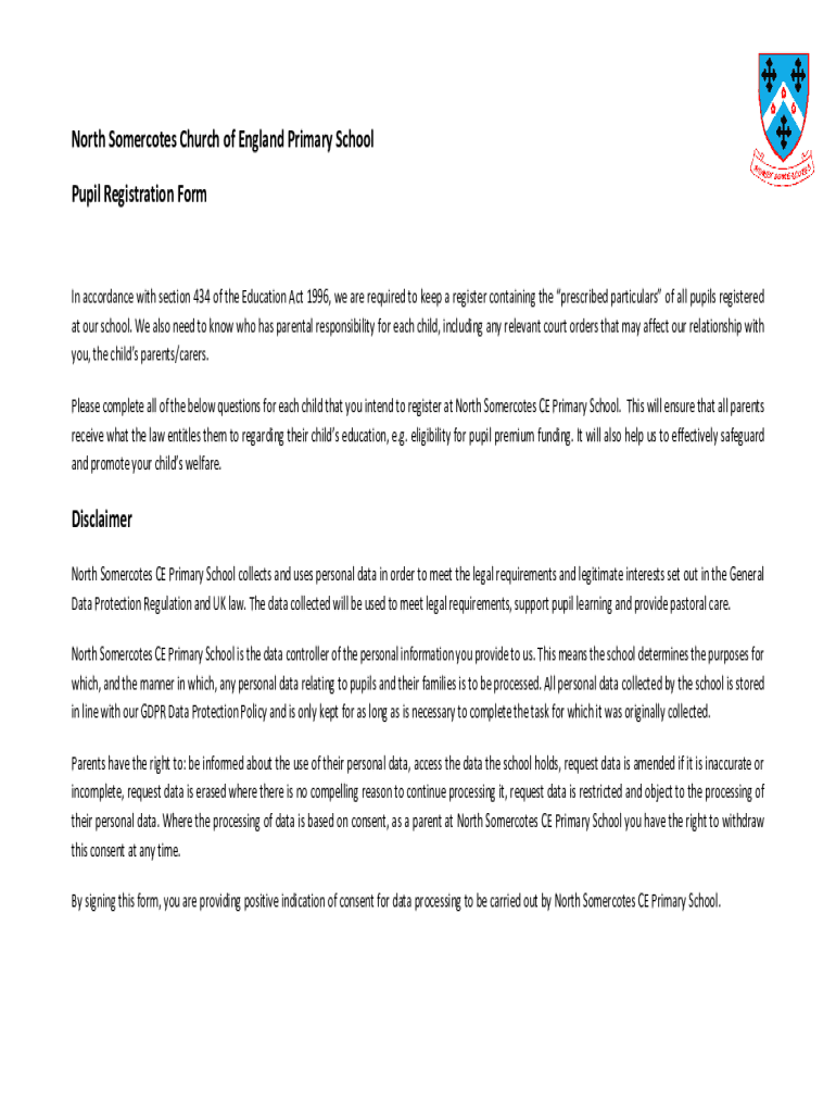 Pupil Registration Forming accordance with section 434 of the Education Act 1996, we are required to keep a register containing the prescribed particulars