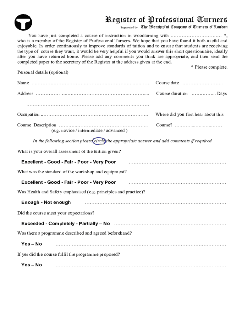 Register of Professional Turners