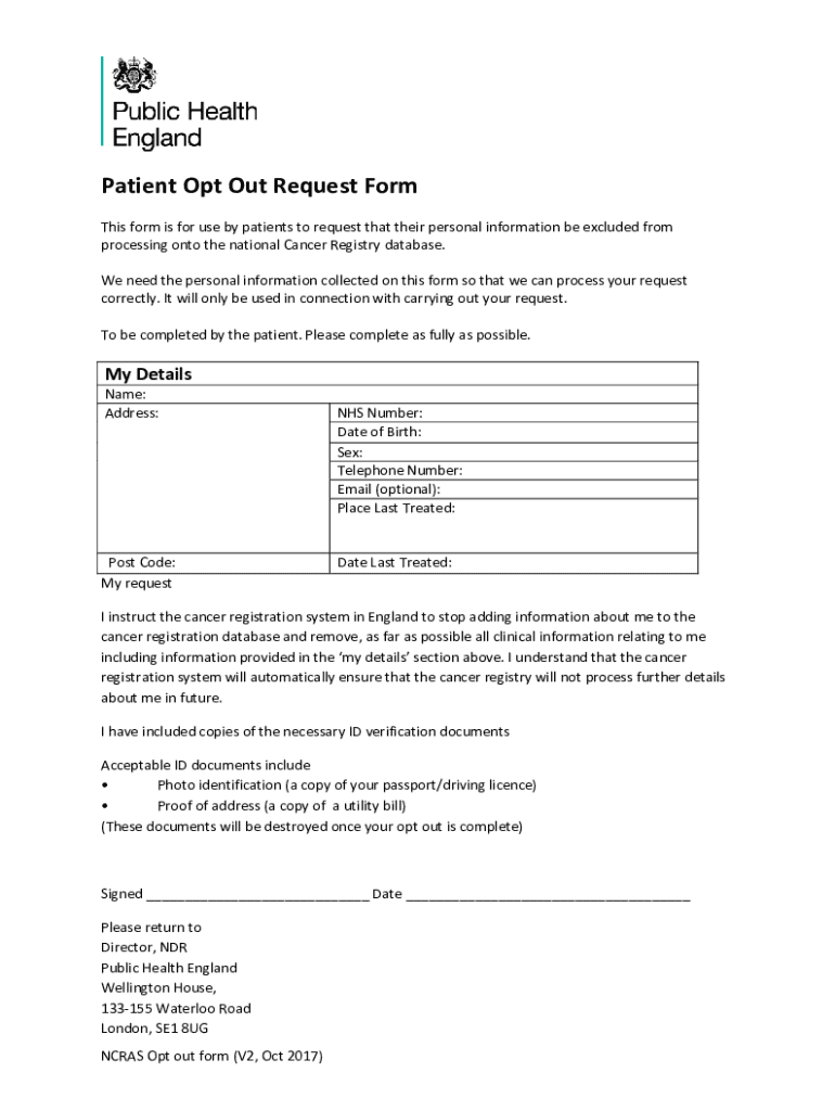 Get the free Patient Opt Out Request Form - National Disease Registration ...