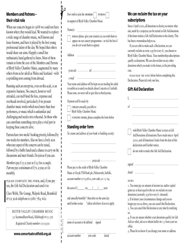 Members and Patrons their vital role When our concerts began in 1988 we could not have/we wish to join the memberspatronsin support of Blythe Valley Chamber Music Name(s)known where they would lead.