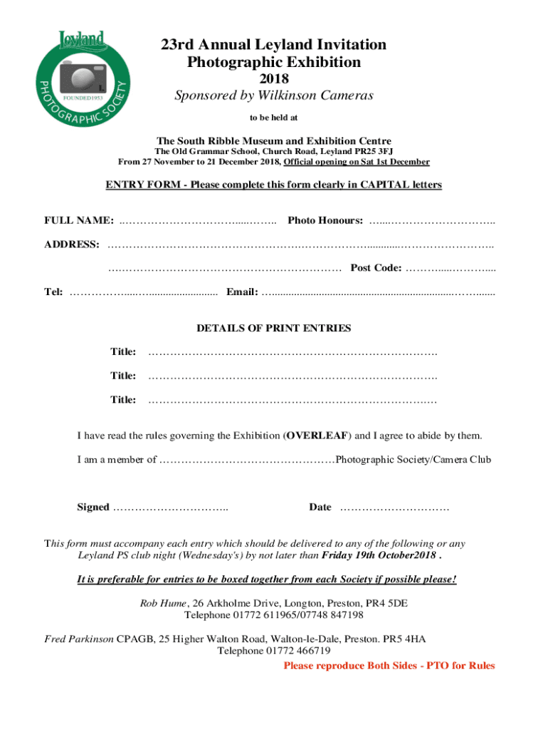 Get the free 2014 Leyland Invitation Photographic Exhibition. Entry form & Rules 2014
