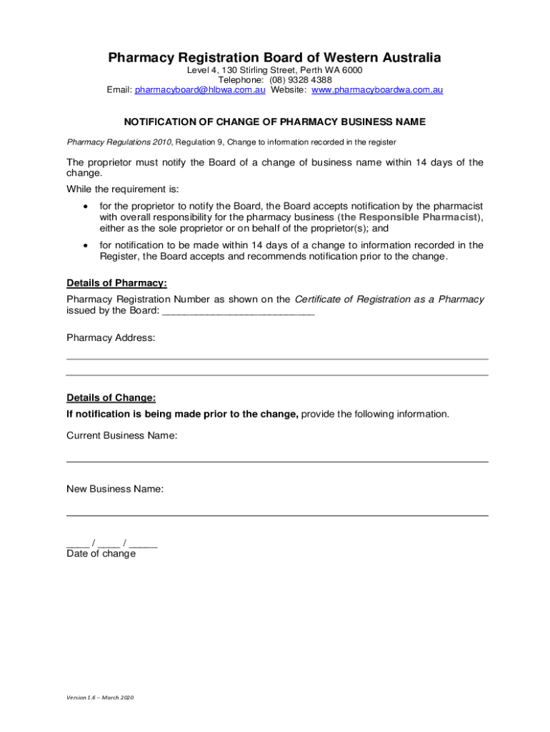 Email: pharmacyboard@hlbwa.com.au Website: www.pharmacyboardwa.com.auNOTIFICATION