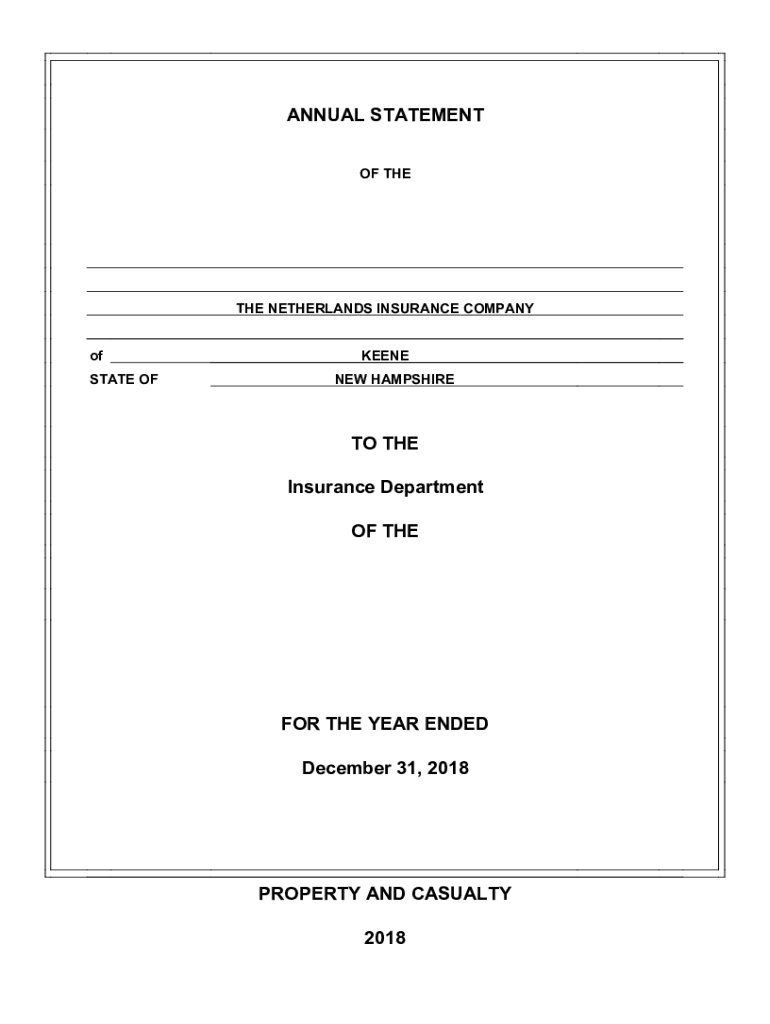 ANNUAL STATEMENT OF TEETHE NETHERLANDS INSURANCE COMPANY of STATE O'Keefe NEW HAMPSHIRE THE Insurance Department OF They're THE YEAR ENDED December 31, 2018PROPERTY AND CASUALTY 2018PROPERTY AND CASUALTY
