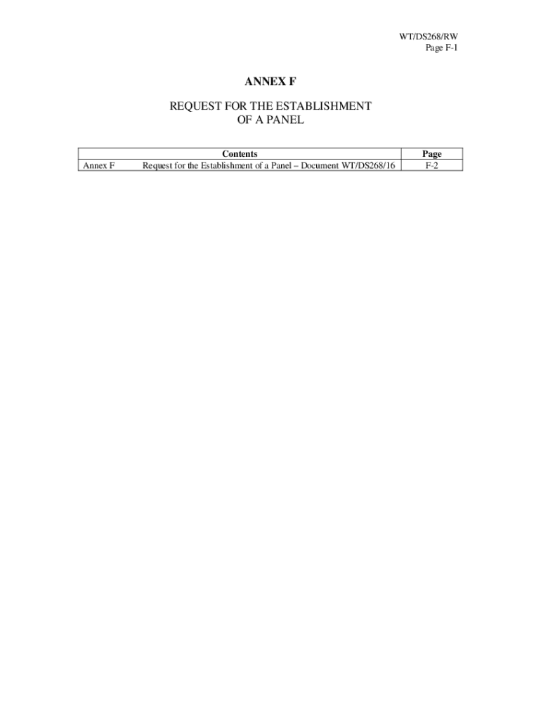WT/DS268/RAW Page F1ANNEX F REQUEST FOR THE ESTABLISHMENT OF A PANELAnnex Contents Request for the Establishment of a Panel Document WT/DS268/16Page F2WT/DS268/RAW Page F2ANNEX F REQUEST FOR THE ESTABLISHMENT